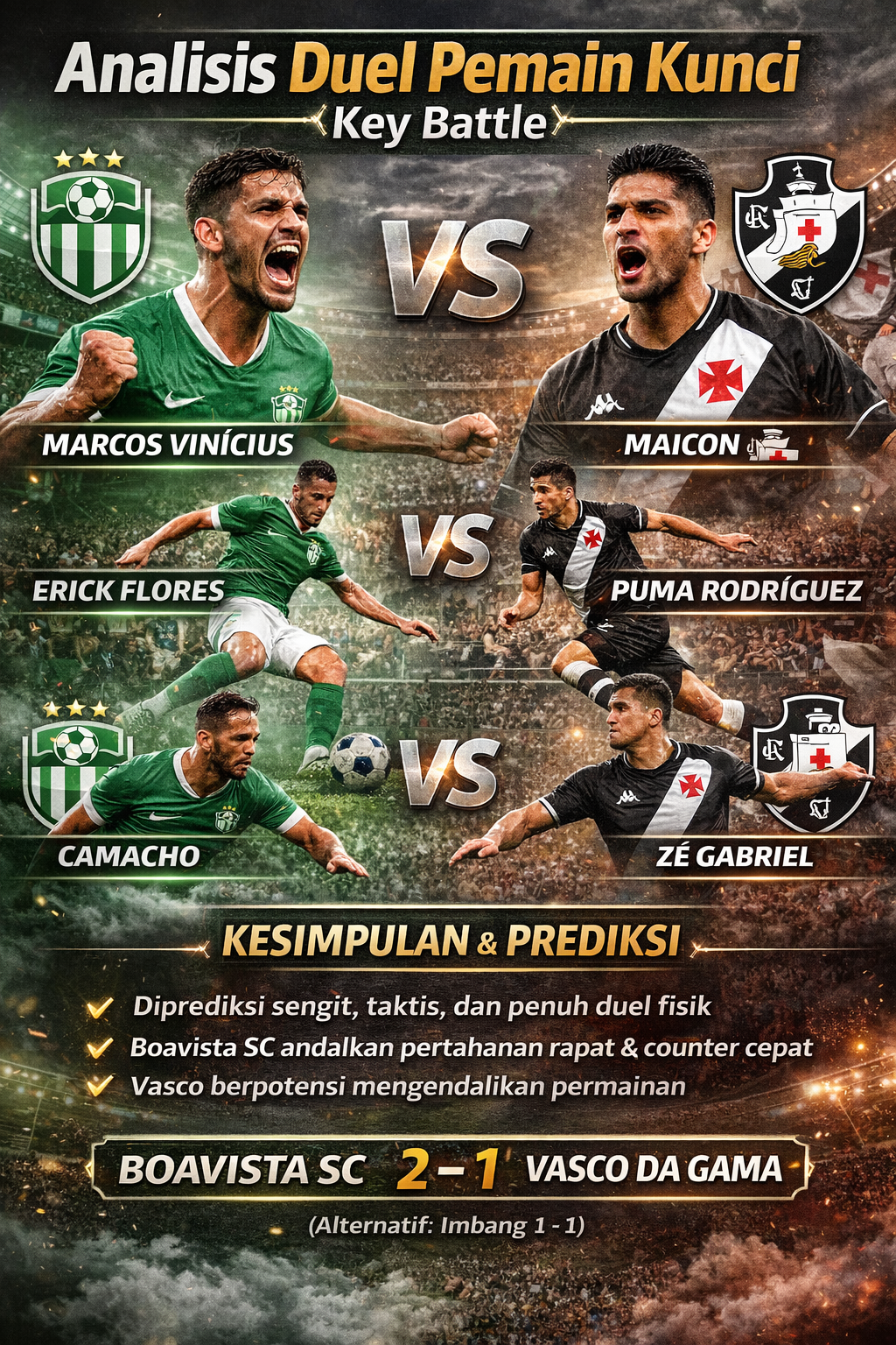 Berikut Analisis Duel Pemain Kunci (Key Battle) pada laga Boavista SC vs CR Vasco da Gama, ditulis dengan gaya tajam, naratif, dan siap tayang.
