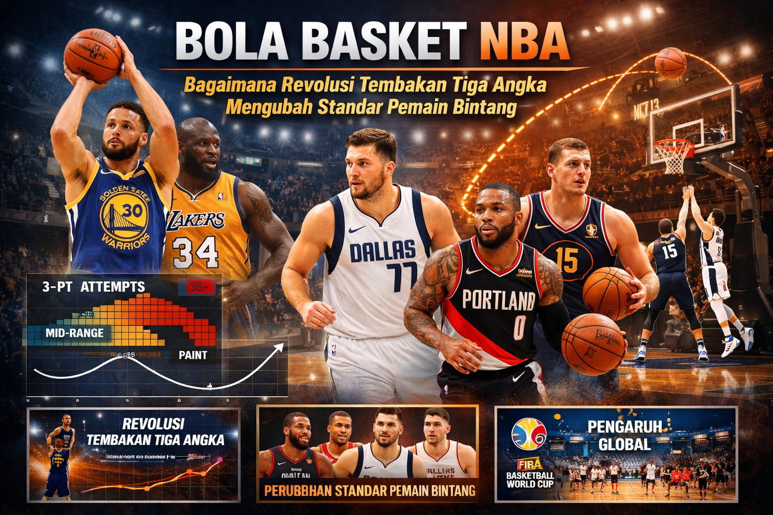 Revolusi tembakan tiga angka di NBA yang mengubah strategi permainan dan mendefinisikan ulang standar pemain bintang modern.