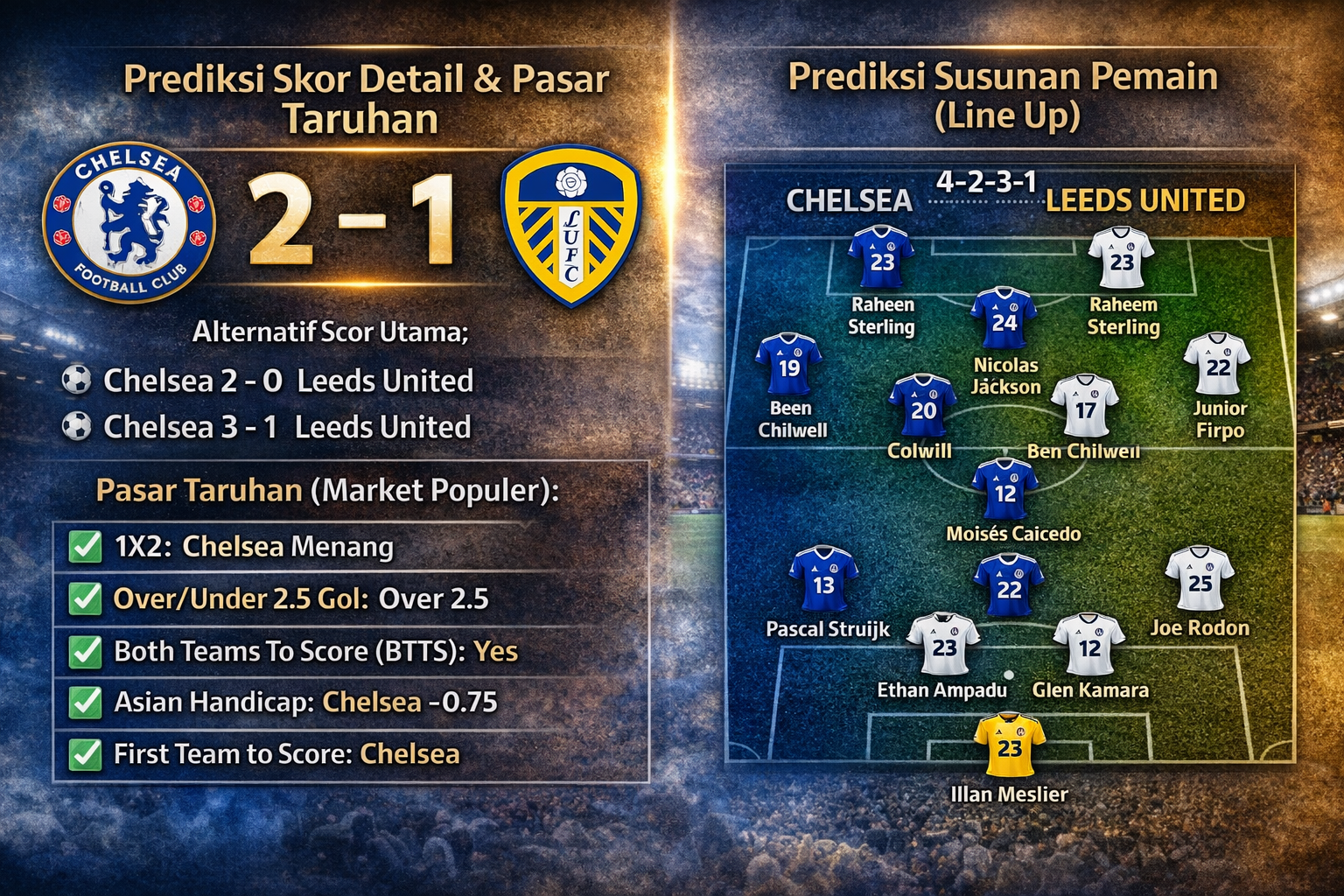 - Prediksi Skor: Chelsea 2–1 Leeds United