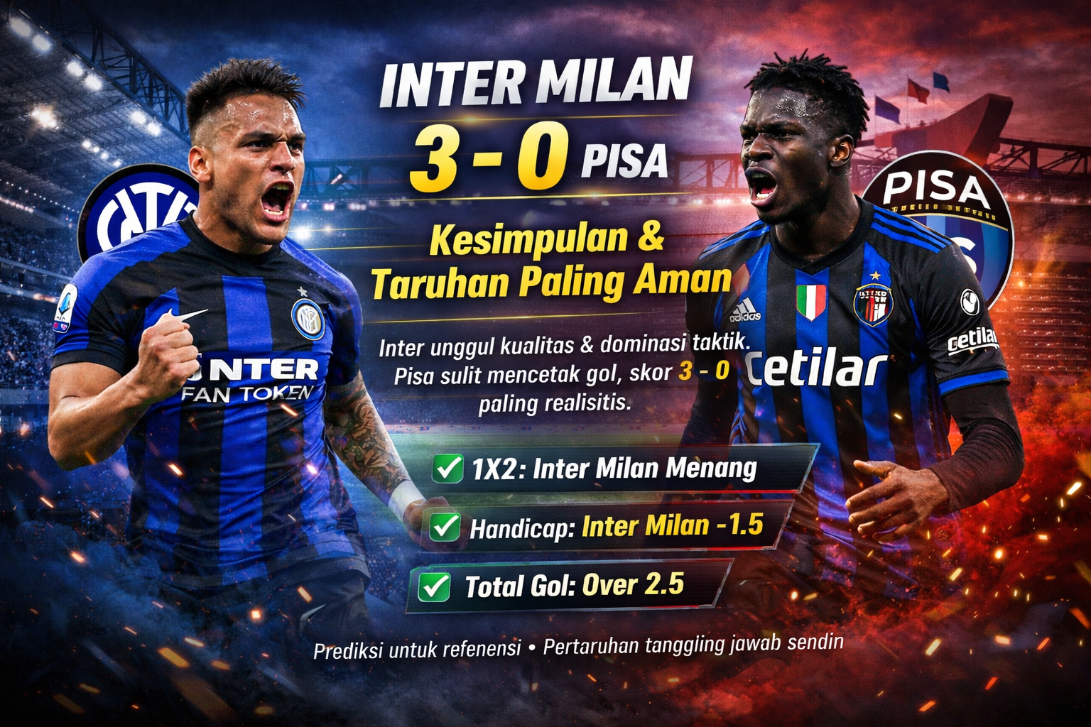 Berikut 🏁 kesimpulan akhir & rekomendasi taruhan paling aman untuk laga Inter Milan vs Pisa – Liga Italia, dirangkum padat, logis, dan siap jadi penutup artikel prediksi kamu 👇