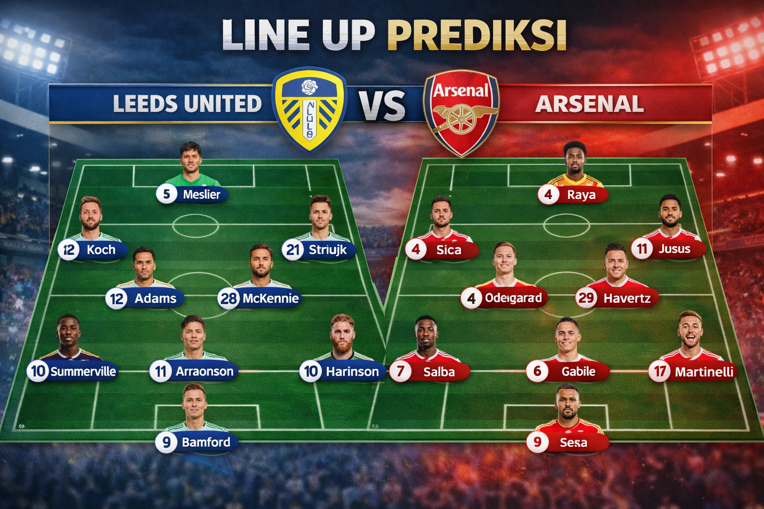 Pertandingan Leeds United vs Arsenal diprediksi berlangsung ketat dan penuh intensitas. Leeds memiliki peluang lewat tekanan tinggi dan dukungan publik Elland Road, namun Arsenal dinilai lebih unggul dari segi kedalaman skuad dan kontrol permainan. Efektivitas penyelesaian akhir akan menjadi pembeda utama.