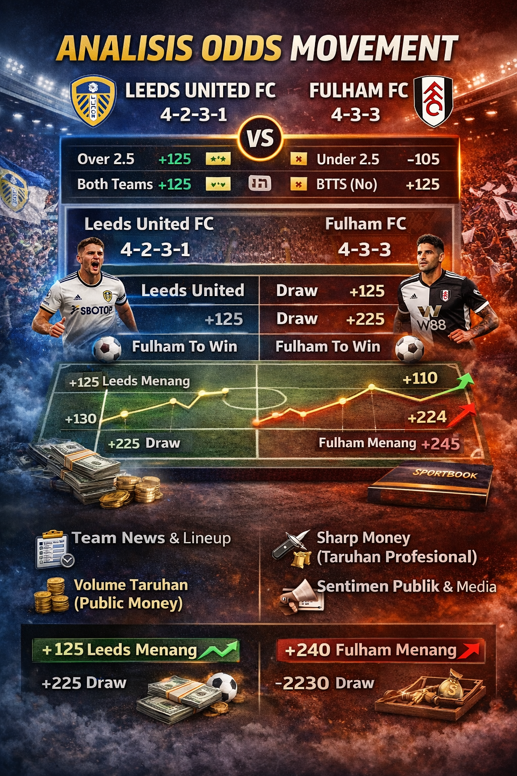 Berikut Analisis Odds Movement ala Sportsbook untuk pertandingan Leeds United vs Fulham, ditulis dengan gaya profesional sesuai konteks taruhan modern:
