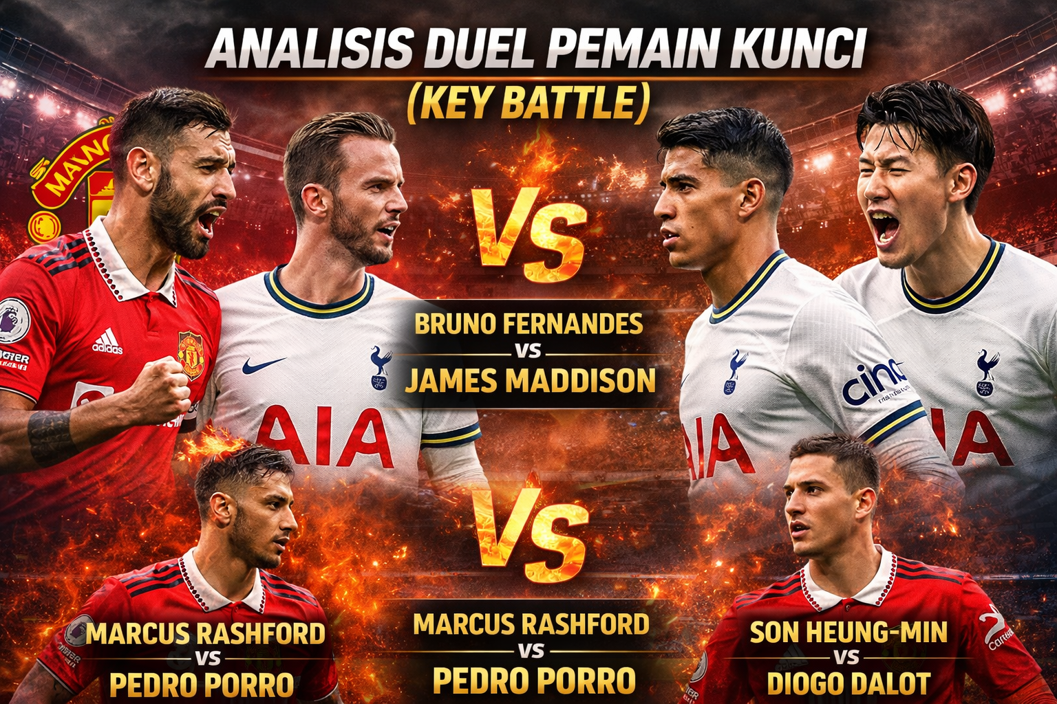 Tottenham mengandalkan kreativitas lini tengah dan ketajaman penyerang mereka untuk menembus pertahanan United. Pertarungan di sektor sayap diprediksi menjadi kunci, mengingat kedua tim memiliki pemain dengan kecepatan dan kemampuan duel satu lawan satu yang kuat.
