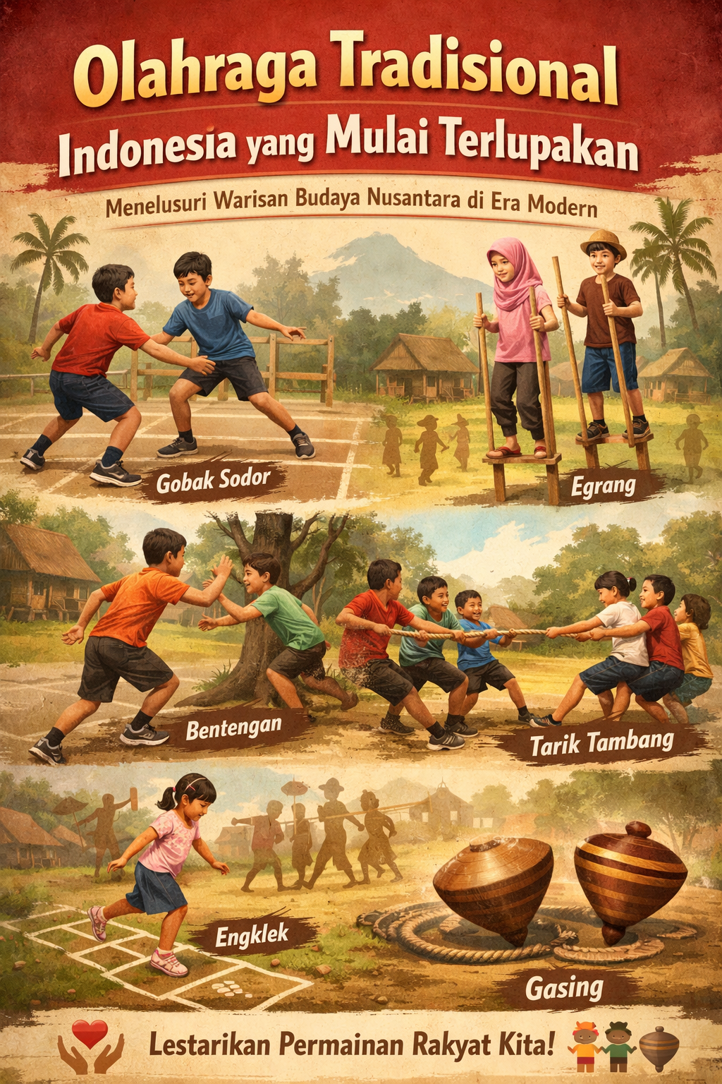 Indonesia dikenal sebagai negara dengan kekayaan budaya yang luar biasa, termasuk dalam bidang olahraga tradisional. Berbagai permainan rakyat tidak hanya berfungsi sebagai hiburan, tetapi juga menjadi sarana pendidikan, kebersamaan, serta pembentukan karakter. Namun, seiring dengan perkembangan teknologi dan masuknya budaya modern, banyak olahraga tradisional yang mulai terlupakan oleh generasi muda.