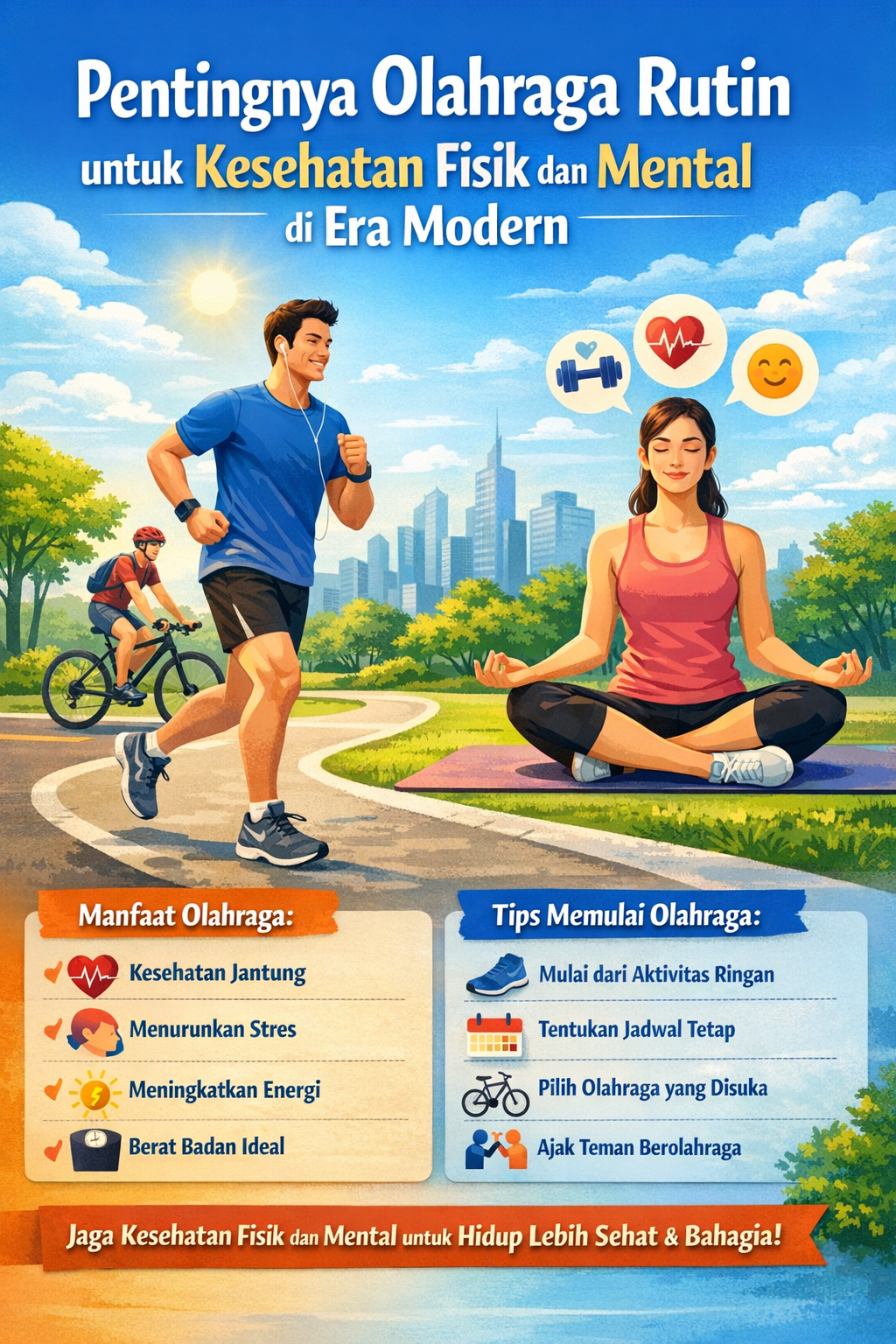 Di tengah gaya hidup modern yang cenderung kurang aktif, meluangkan waktu untuk berolahraga adalah investasi penting untuk kesehatan jangka panjang. Tubuh yang fit dan sistem imun yang kuat memungkinkan seseorang menjalani hidup dengan lebih produktif, energik, dan sehat.