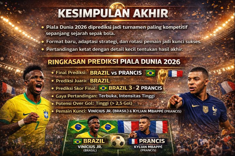 Berikut Kesimpulan Akhir Artikel + Ringkasan Prediksi, rapi, netral, dan pas untuk penutup berita prediksi Piala Dunia 2026.