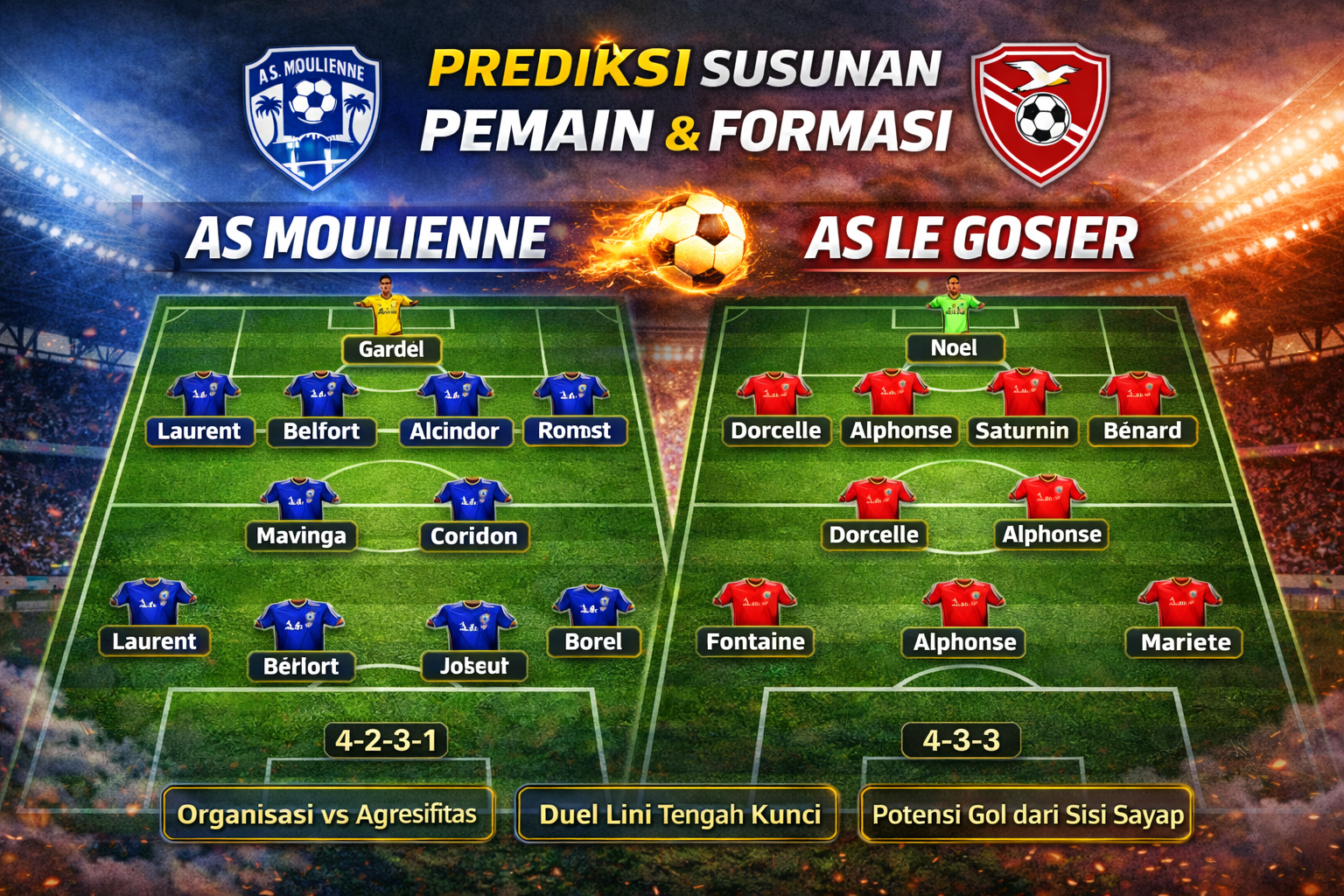 AS Moulienne unggul dalam organisasi dan keseimbangan tim, sementara AS Le Gosier lebih berbahaya lewat tempo dan transisi cepat. Perbedaan gaya ini berpotensi menghasilkan laga terbuka, terutama di babak kedua.