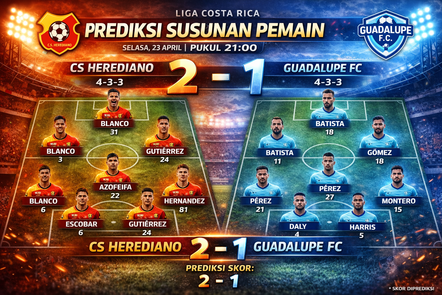 CS Herediano memang memiliki keunggulan secara struktur permainan, namun Guadalupe FC bukan lawan yang mudah ditaklukkan. Jika Herediano gagal memanfaatkan peluang awal, hasil imbang menjadi skenario yang sangat masuk akal.