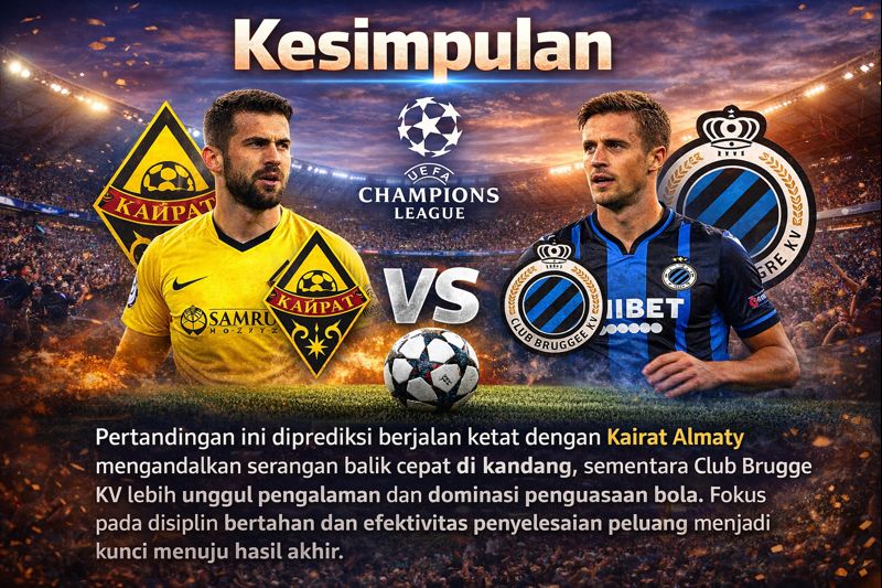 Kairat Almaty diperkirakan akan kesulitan keluar dari tekanan, terutama jika Club Brugge berhasil menerapkan pressing agresif sejak awal laga. Perbedaan kualitas di lini tengah dan efektivitas penyelesaian akhir menjadi faktor pembeda utama dalam pertandingan ini.
