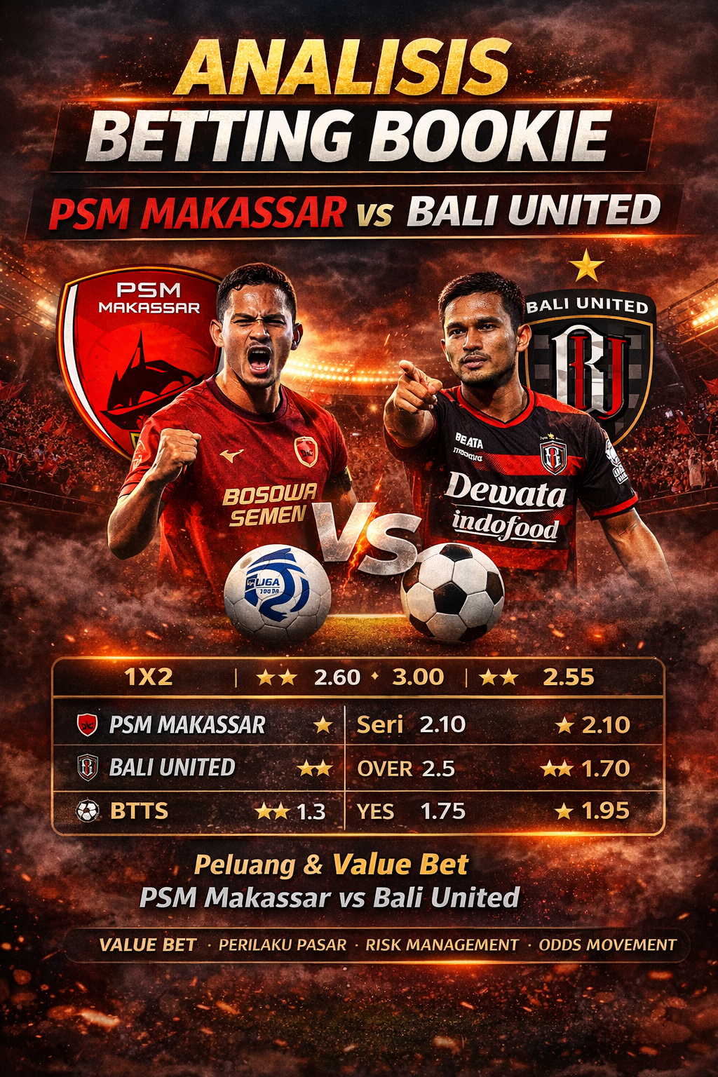 PSM Makassar vs Bali United Pusam FC, ditulis dengan sudut pandang penyusun odds, fokus pada risk management, perilaku pasar, dan value bet—orisinal & aman dari plagiarisme.