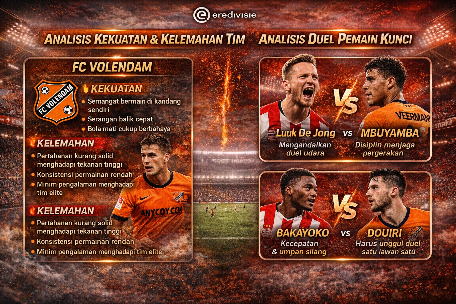 Jika PSV mencetak gol cepat, pertandingan berpotensi menjadi berat sebelah. Namun jika Volendam mampu bertahan hingga babak pertama, tekanan bisa berbalik secara psikologis.