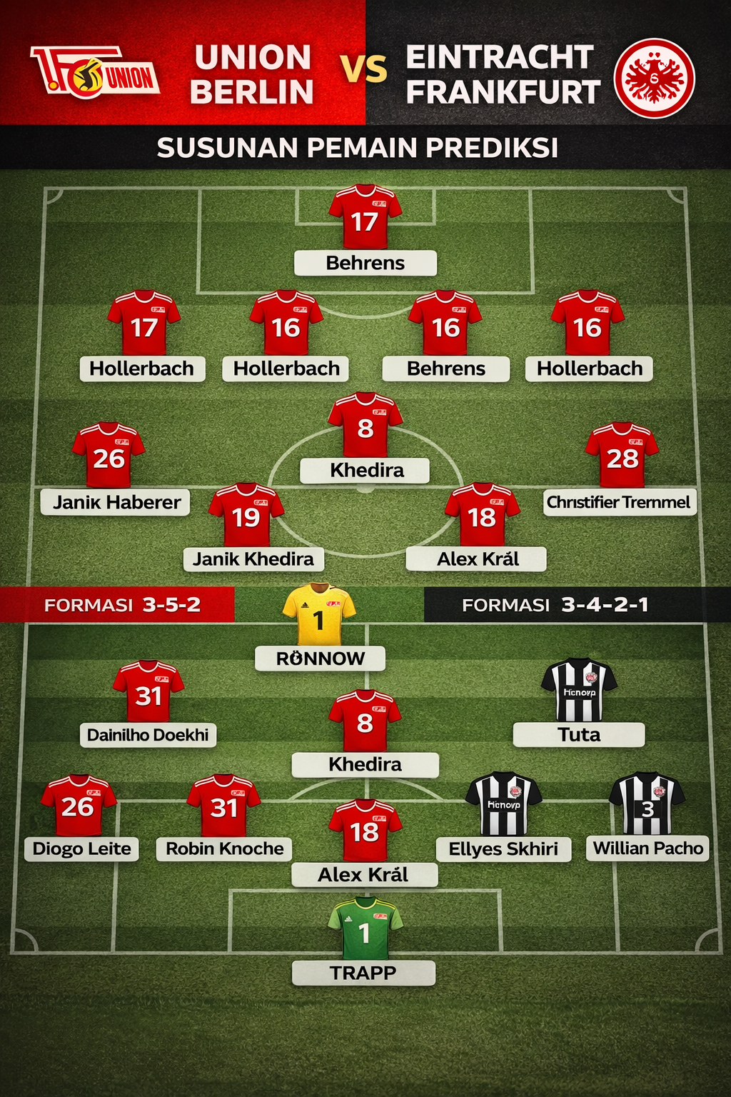Union Berlin diprediksi tampil pragmatis dengan pressing medium dan fokus menjaga struktur pertahanan. Serangan akan lebih banyak dibangun lewat sisi sayap dan bola mati.